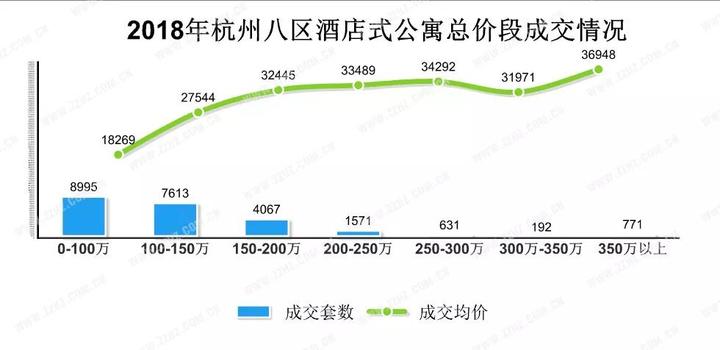 数据显示,从杭州八区近9个月成交情况来看,总价段200万以内的酒店式公寓相对较能被市场接受,占比超过86.7%;200万以上总价,客户会出现抗性;总价在200-250万以上,属于区域内较高总价段产品,市场反馈明显下降。
