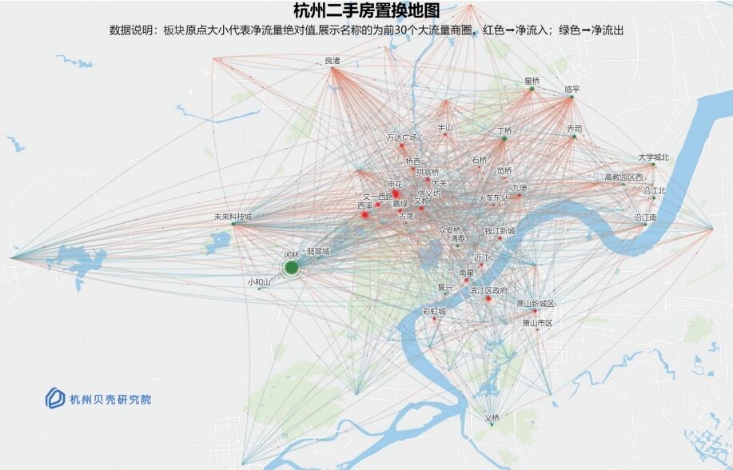 杭州贝壳研究院近日分析了2020年杭州业主万余个换房样本、超5000条换房路径数据,绘制了一张反映杭州业主换房偏好的“二手房置换地图”。