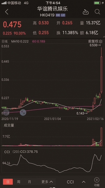 受到内地电影票房大卖影响,昨天几只在香港上市交易的内地影视股集体出现躁动。其中,华谊腾讯娱乐盘中涨幅一度达到110%(收盘上涨90%),阿里影业的涨幅同样超过30%,这或许意味着稍晚开盘的A股影视股也将有所表现。