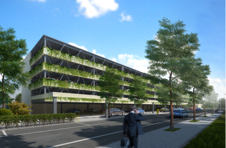 从提高土地的开发强度和集约利用角度出发,在项目规划阶段就将公共停车场与农都农产品流通产业园进行一体设计同步建设。该公共停车库设计有泊位400个,将为后期综合体的商业商务停车和三里家园等老旧小区居民停车需求提供保障,进一步缓解三里亭周边交通及停车难问题。