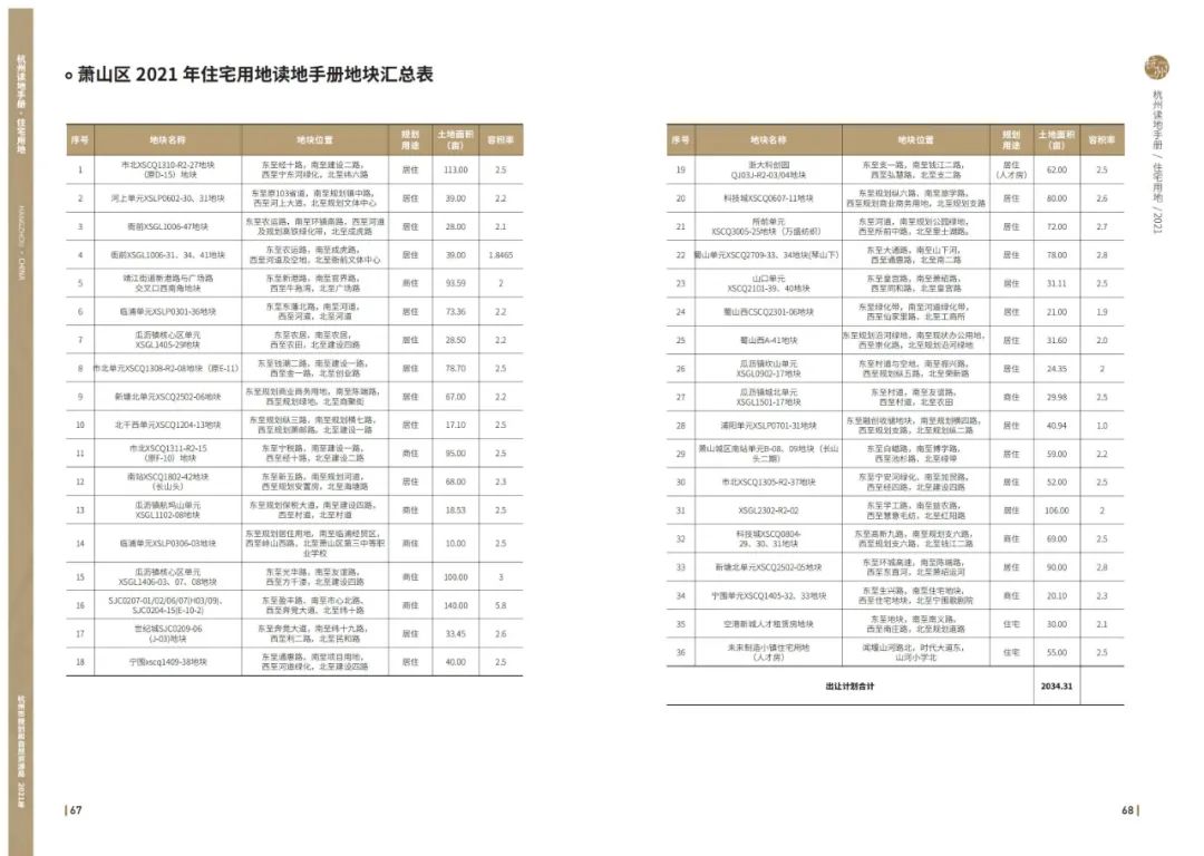 2021年住宅用地读地手册地块汇总表