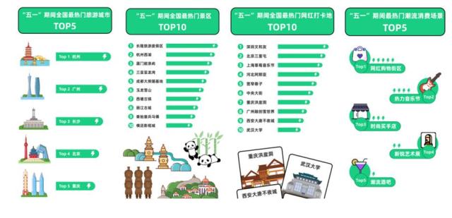 此外,透过街电大数据不难发现,后疫情时代国内旅游市场正在发生变化,民众在今年“五一”期间的出游选择呈现出明显的新趋势。相对于旅游景区,年轻人更热衷于网红目的地的社交分享和潮流打卡。深圳文和友、北京三里屯、上海草莓音乐节、河北阿那亚、成都宽窄巷子、哈尔滨中央大街、重庆洪崖洞、广州融创雪世界、西安大唐不夜城、武汉大学入围国内人气最高网红打卡地前十。