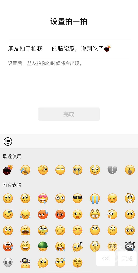 用户升级至微信最新版本后,只要在“朋友拍了拍我______”加入会动表情,就能实现“炸一炸”的效果。