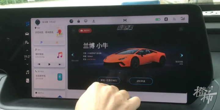 像是小鹏汽车,去年上架了一款App,叫“超跑声浪”,内置多款性能车的音效。它同样调取的是车内扬声器,车内乘员可以听到声音。