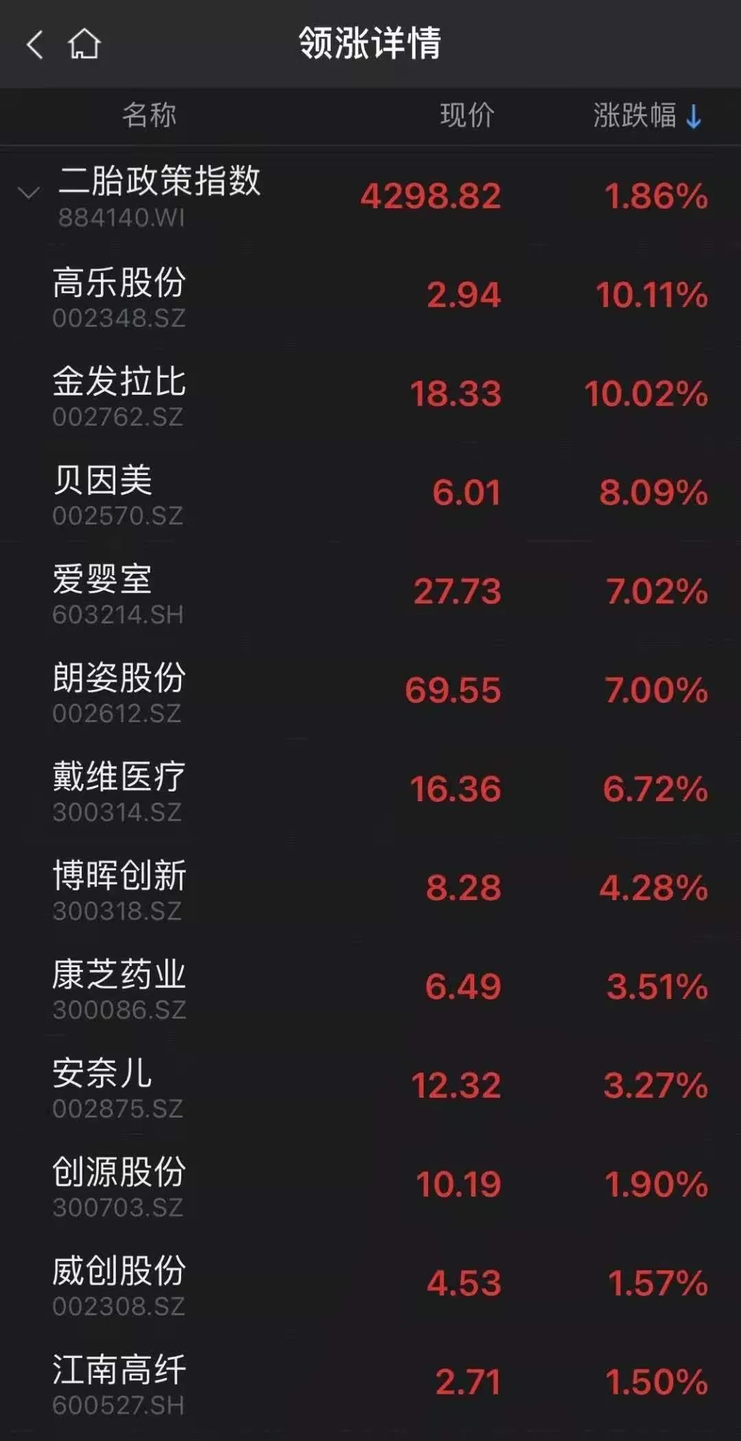 昨天尾盘,二胎概念板块出现异动,直线拉升,高乐股份、金发拉比涨停,贝因美、爱婴室、戴维医疗等多股大涨。“三胎概念股”横空出世!