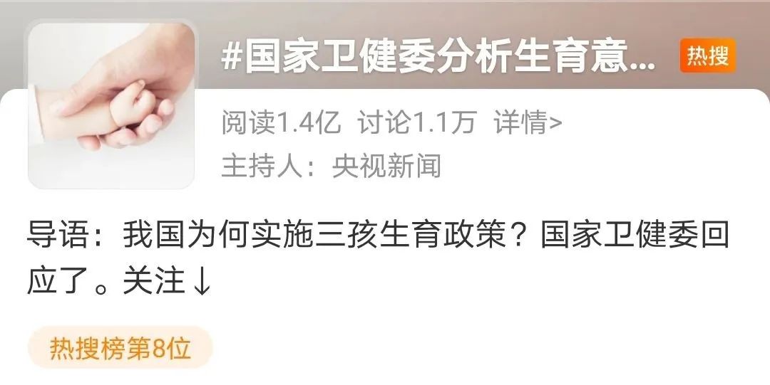 今天一早,#国家卫健委分析生育意愿降低原因#冲上热搜前排↓↓↓