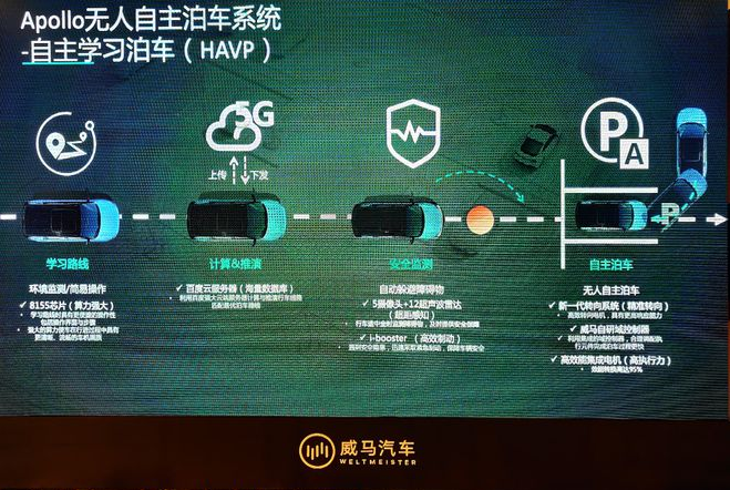 再来看前不久刚上市的威马W6。威马的这套HAVP无人自主泊车系统,和百度Apollo联合打造。