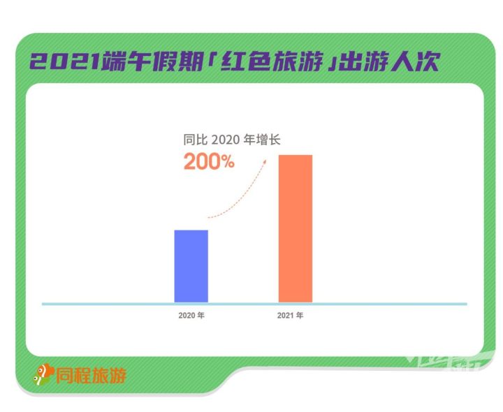 另据同程旅游的报告显示,6月初文化和旅游部联合中央宣传部、中央党史和文献研究院、国家发展改革委推出了“建党百年红色旅游百条精品线路”,多元的文化主题,丰富的旅行体验,加快了红色旅游精品化探索。今年端午假期,红色旅游也成为度假市场的一抹亮色,与2020年同期相比,2021年端午假期红色旅游人次增长200%。