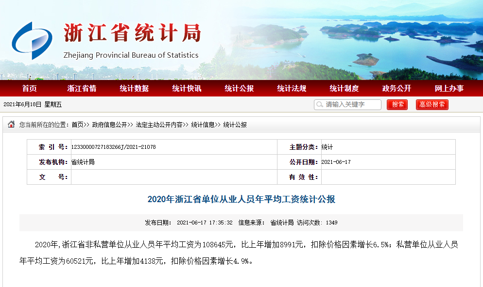 近日,浙江省统计局发布了《2020年浙江省单位从业人员年平均工资统计公报》,大家可以对照起来参考参考。