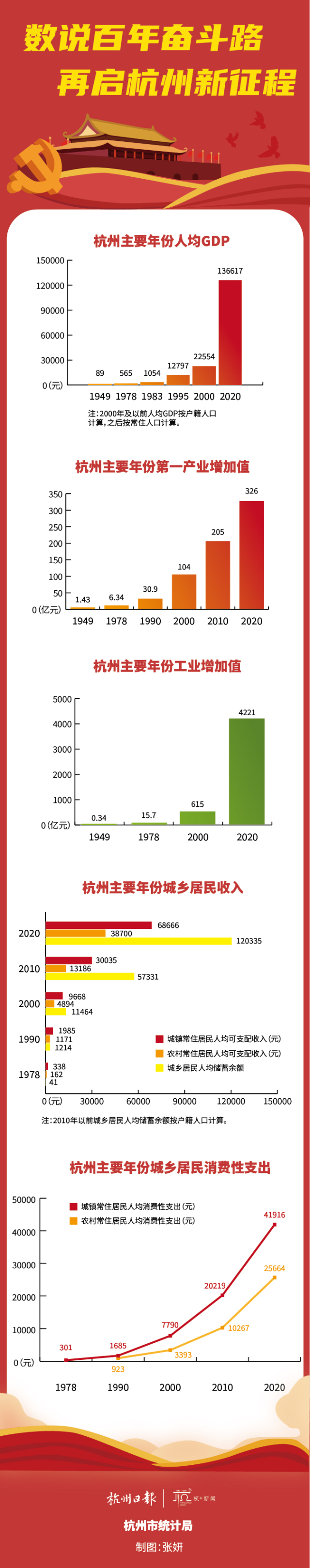 杭+新闻讯 一世纪风雨兼程,中国共产党走过了百年光辉历程,1922年9月杭州建立地方党组织,1949年5月3日杭州解放,中国共产党的领导下,杭州人民筚路蓝缕、风雨兼程,进行了不屈不挠的革命斗争和波澜壮阔的社会主义建设,经过百年奋斗,杭州实现了从站起来、富起来到强起来的伟大飞跃。