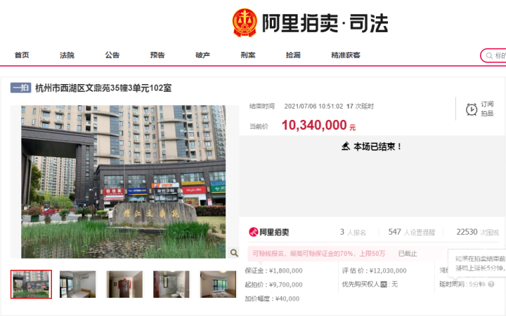 昨天上午10点正式开拍,竞买周期24小时,在无延时的情况下,原定于今天上午10点结束。