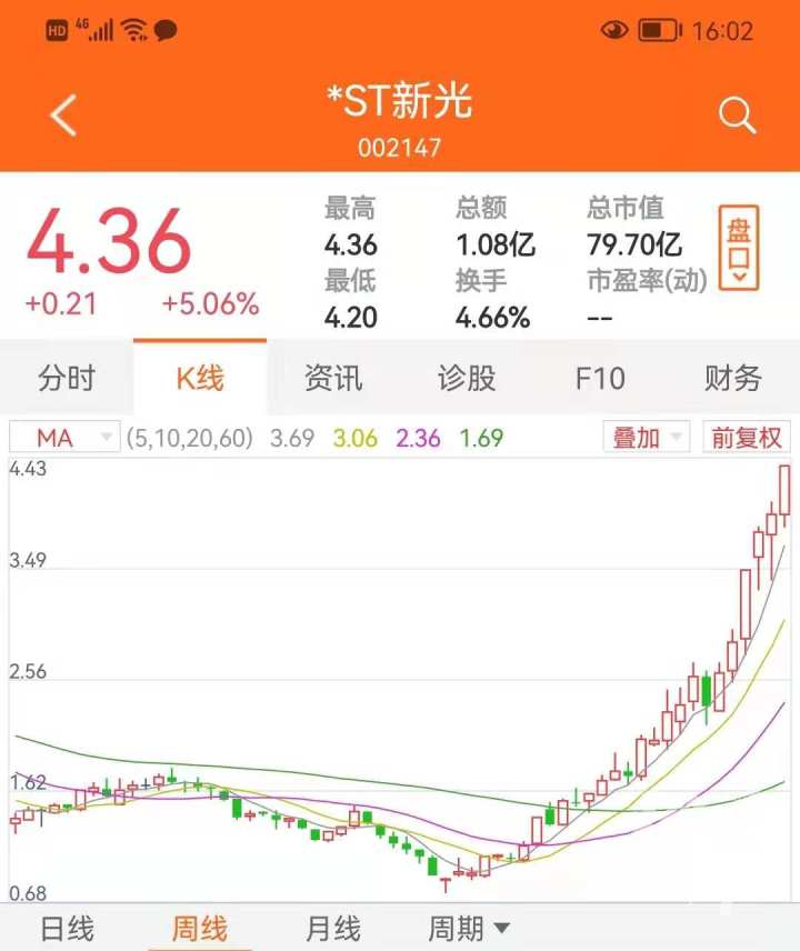 随着这份公告发出,*ST新光接连两天实现涨停,今天上午涨停板曾一度打开,但很快被封回,实时股价4.36元,这和一月初最低的0.75元的股价相比已经涨了5.8倍。