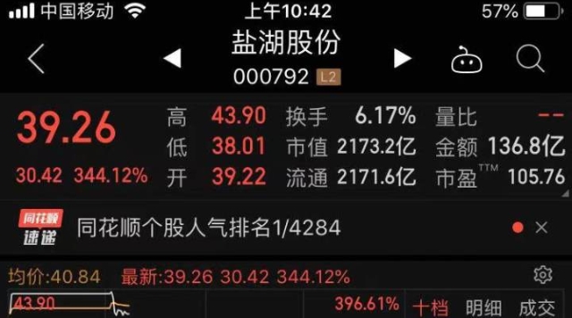 2020年4月29日,“不死鸟”盐湖股份的收盘价为8.84元,总市值480亿元;一年多后的今天,复牌交易的盐湖股份盘中暴涨388%,总市值已经超过2300亿元。在恢复上市之前,有券商曾乐观估计盐湖股份的合理估值应该在1300亿至2000亿元之间,现在看来这个估计还略微显得有些“保守”了。