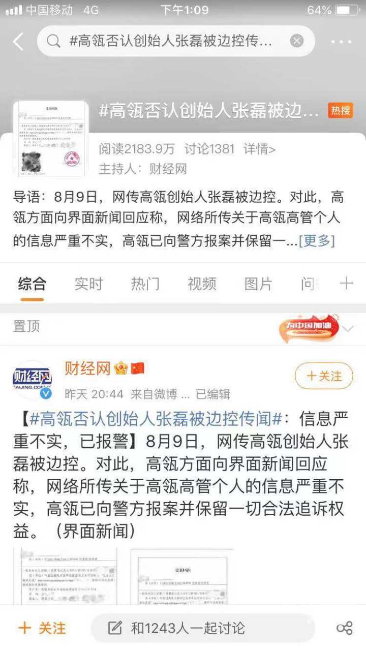 面对谣言,高瓴官方积极回应称“网络所传关于高瓴高管个人的信息严重不实,高瓴已向警方报案并保留一切合法追诉权益。”张磊本人微信朋友圈在9号也有更新。