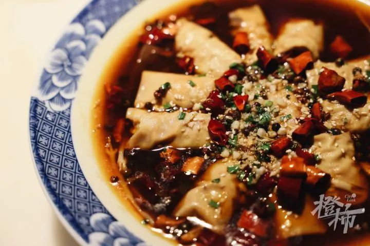 作为雅俗共赏的套餐,没有很明确的菜系,比如那个让我们觉得意外的麻辣千张包,这么江南的一个小吃,上桌的时候热火朝天,有点像毛血旺里加了千张包。坚果酒糟羹在麻辣系千张包后面,起到一个非常好的调和作用。