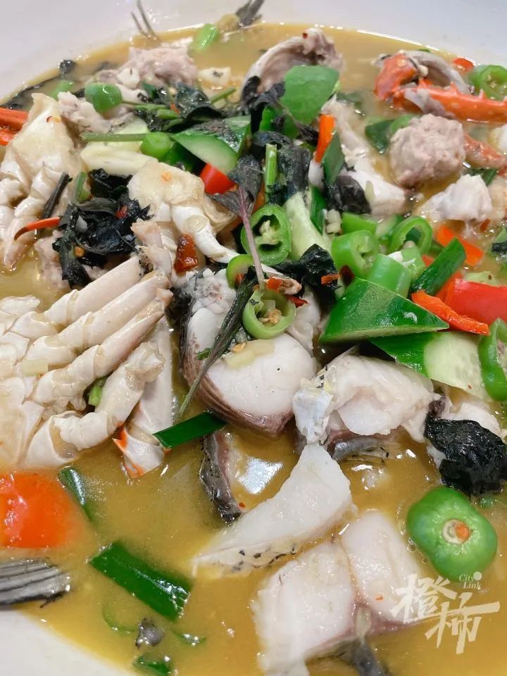 开化清水鱼不是单纯的鱼,里面还有湖蟹,还有他们自己做的肉圆儿,这个是重点加分项。衢州菜烧鱼,多半是用紫苏的,配上菜籽油,放点黄瓜,就是大家喜闻乐见的一锅鲜美的鱼汤了。
