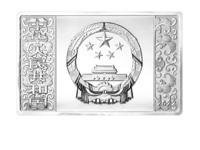 该套金银纪念币正面图案均为中华人民共和国国徽,衬以中国传统吉祥纹饰,并刊国名、年号。