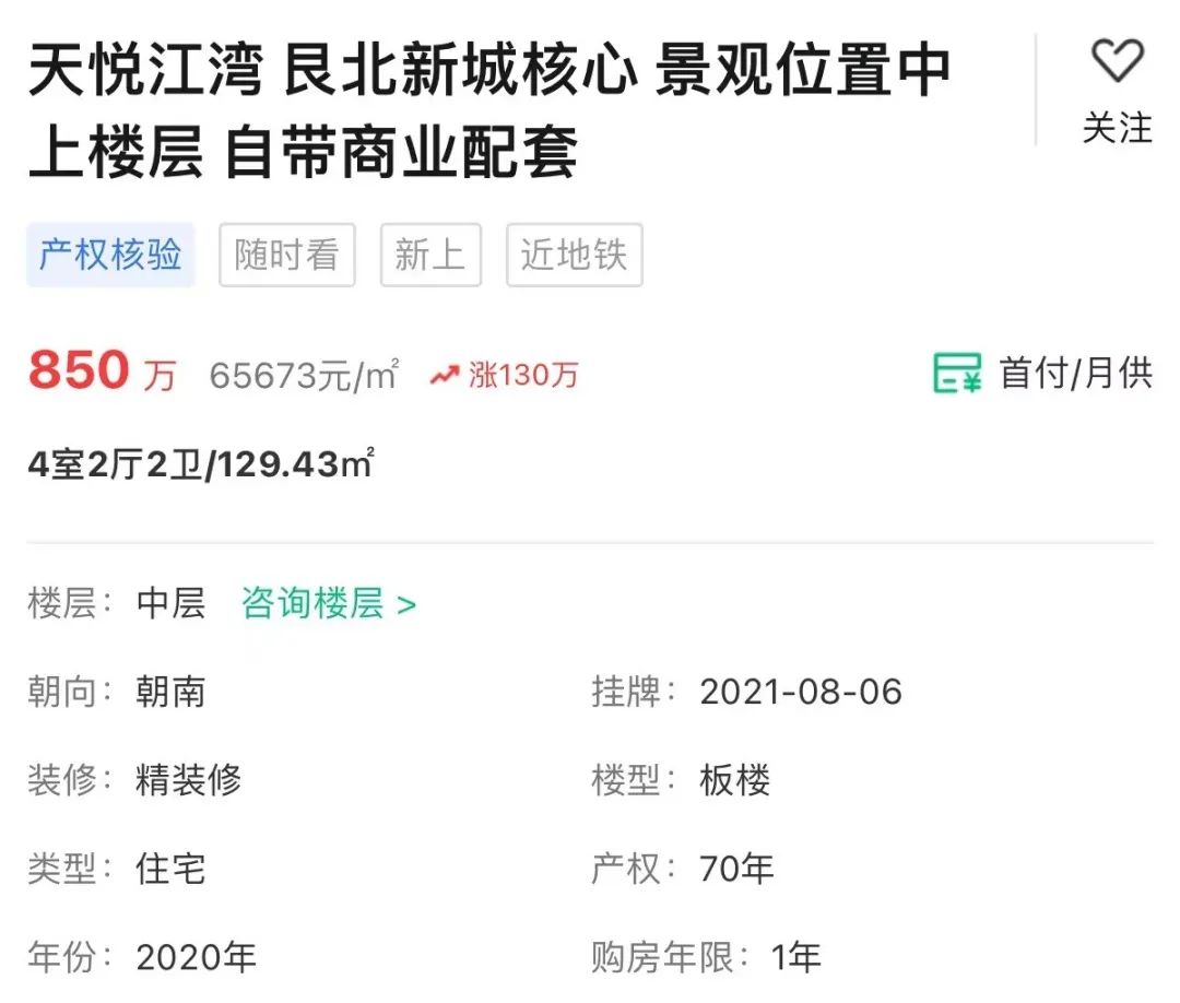 板块内,招商雍华府、绿城杨柳郡、茂悦府、越秀招商天悦江湾等二手小区,近期挂牌价均有所上涨,其中越秀招商天悦江湾新上的一套129.43㎡的房源涨价130万,折合单价65673元/㎡。