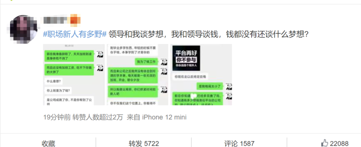 有微博大v收到投稿:领导和我谈梦想,我和领导谈钱,钱都没有还谈什么梦想?