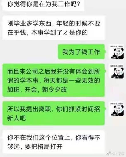 坚持一点点x:谁工作不是为了那点工资,我觉得他们敢于辞职,敢于对不喜欢的说拒绝很真实,很有勇气。因为有些人只会选择忍耐和躲藏。而有些人会跳出一个一个牢笼,直到找到更好的。