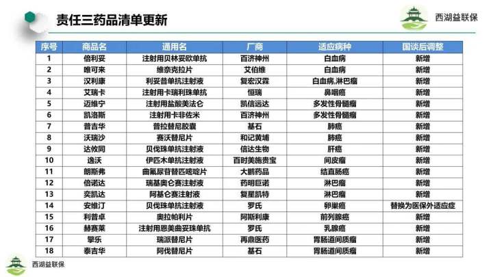 进入2022年度,由于16种创新药品的部分或全部适应症进入新版国家医保药品目录,“浙里医保·西湖益联保”同步将上述16种创新药品的部分或全部适应症不再纳入责任三的保障范围,而是将它们在医保报销后的自付部分纳入责任一继续报销。