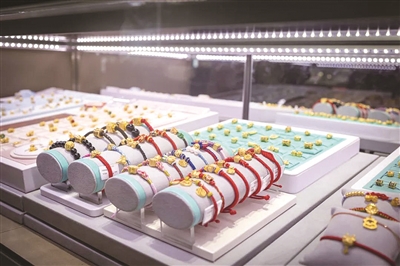 一方面是“意料之外”的金条热销,另一方面,春节前这波黄金潮也在艾新星和李玲的预料之中——手串类的黄金饰品特别受欢迎,特别是带有生肖虎年元素的小配饰,几乎到货一波卖空一波。