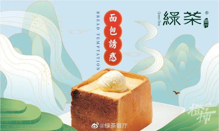 绿茶餐厅以杭帮菜为主,兼有川粤鲁菜等产品,自我定位为快时尚风格餐厅。特别是招牌菜“面包诱惑“,白色的冰激凌放在烤过的面包之上,一口下去,香浓而不腻味,是很多人去店里必点的爆款菜品。当然其他如绿茶饼、绿茶烤鸡、绿茶烤肉、石锅鸡汤豆腐等也都是经典菜。