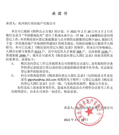 都市快报报道 未来科技城板块的华润绿汀路TOD——杭珹未来中心,首开378套房源,由于报名人数过多,触发社保排序。整体中签率约9%,这批房源按要求需限售5年。