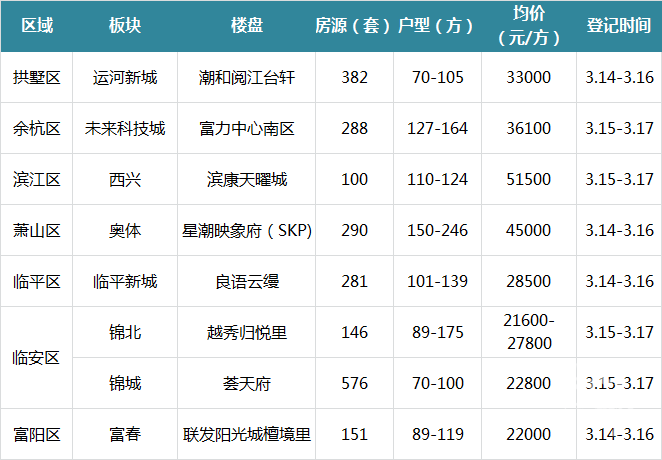 杭珹未来中心计划3月15日线上摇号,未摇中的购房者可以在3月16日起报名其他楼盘。据我们统计,这几天,杭州共有8个楼盘登记中,合计房源超过2200套。这也是近期规模最大的一次开盘潮,建议购房者不要错过。