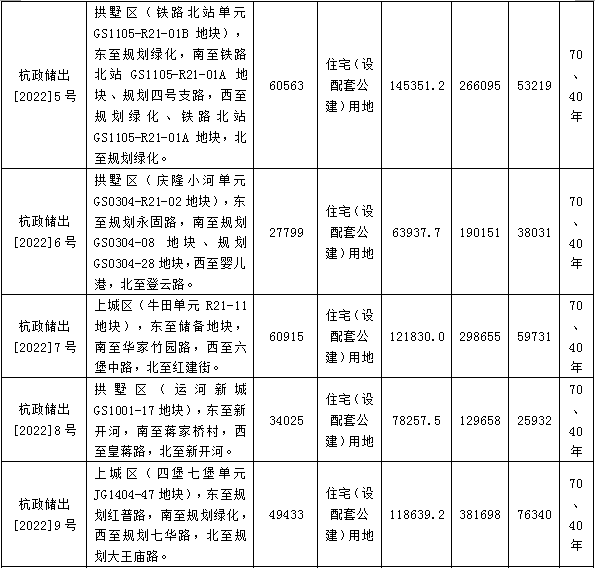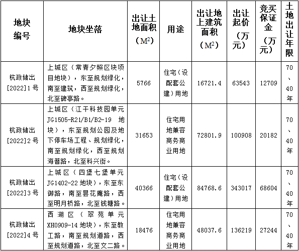 杭州市国有建设用地使用权挂牌出让公告