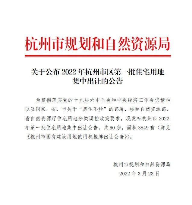重磅!杭州今年第一批集中土地出让来了!