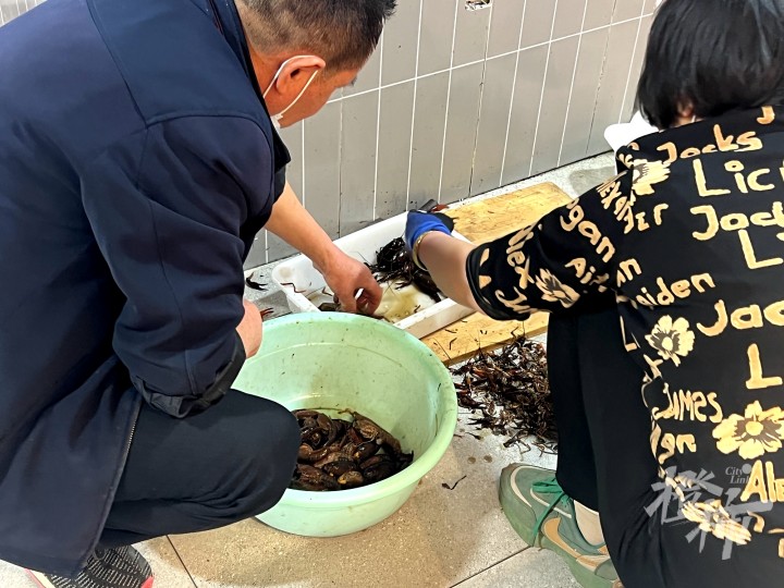 中午12点左右,记者来到农都城农发城市厨房B1层的水产市场,发现只有五六个摊位还剩余部分小龙虾用于零售,根据体型大小,今日售价在20-40元/斤不等。