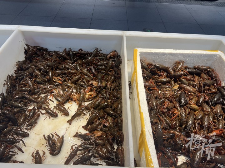 “最近气温较低,小龙虾产量比较少,而且受疫情和物流影响,货进来得比较慢。”俞老板是江苏南京人,做了十多年水产生意,“凌晨批发的商户拿完货,剩下零售的就这么多了。”