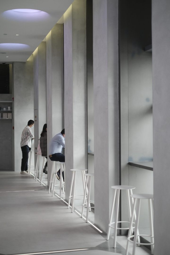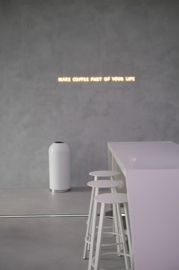 喜欢店里的装修风格,有点冷冰冰的,那个灯光设计加剧了这种感觉,却也很适合拍照,几乎每个人都会举着咖啡杯对着墙上的logo拍一张,打卡标准照嘛。