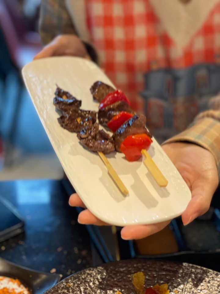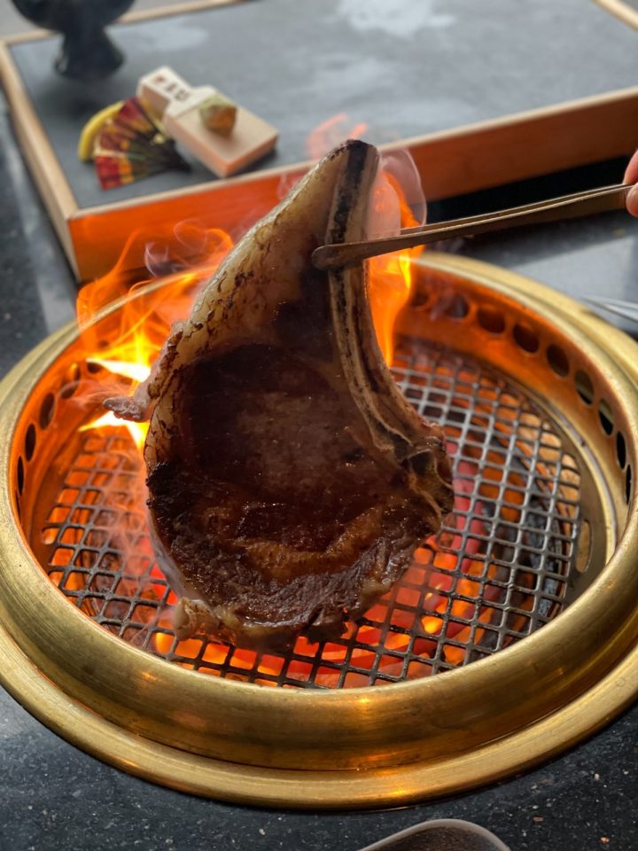 还是请了店长来烤串,隔壁有在吃战斧牛排,听说也是新菜来的。那种热火朝天的氛围,再加上空气里弥漫着的肉香,太爽了!