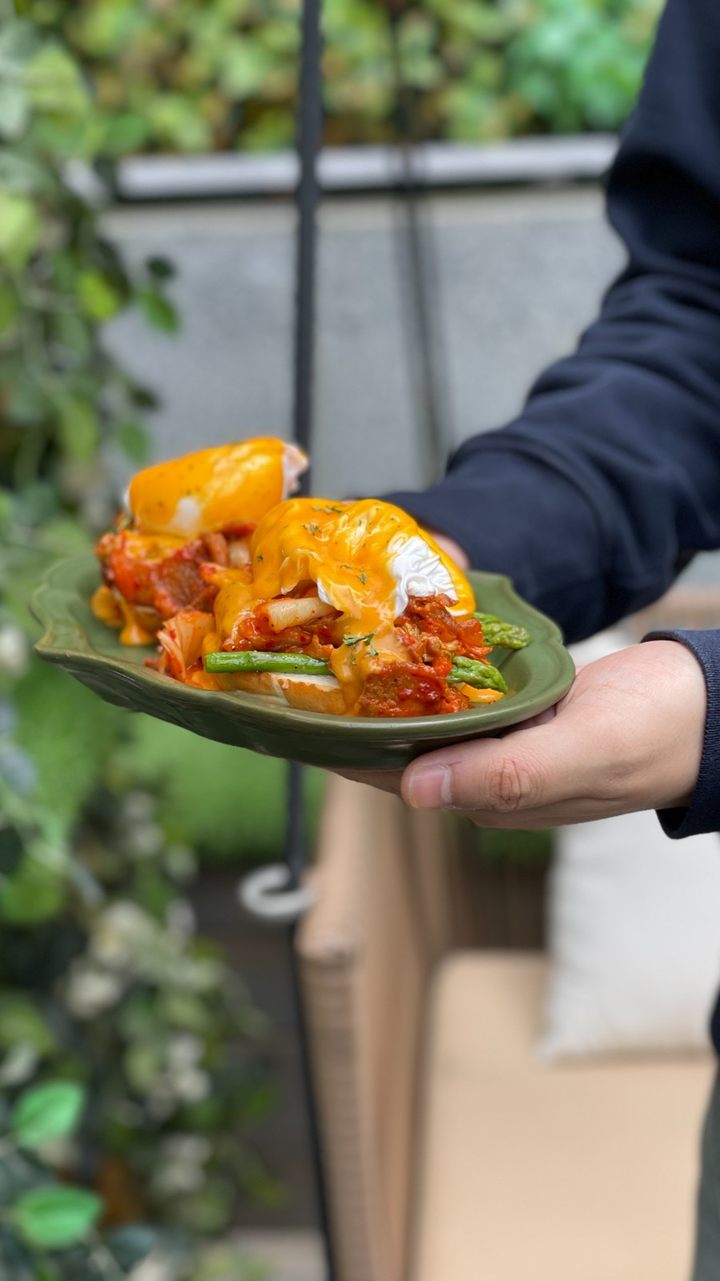 作为一个以brunch(早中餐)见长的餐厅,他们家有好几种有蛋的菜品,有一款班尼迪克蛋给我留下深刻的印象,因为里面搭配的是泡菜和猪肉,吃之前根本想像不到它的味道。