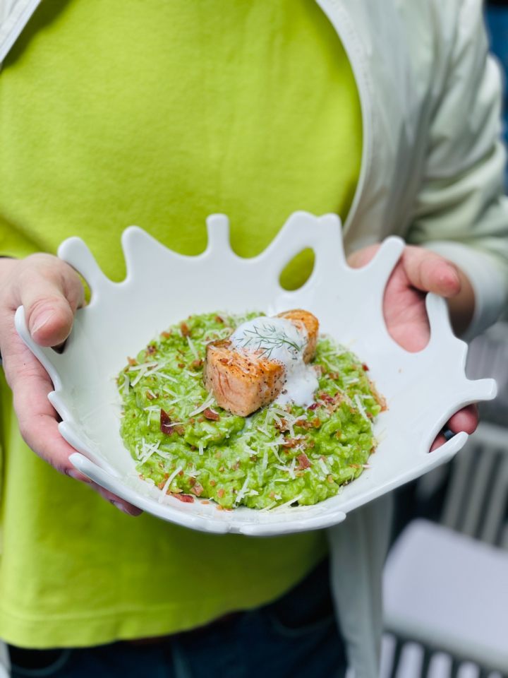 一份小清新的三文鱼烩饭,很出片。味道嘛,烩饭爱好者表示还可以。