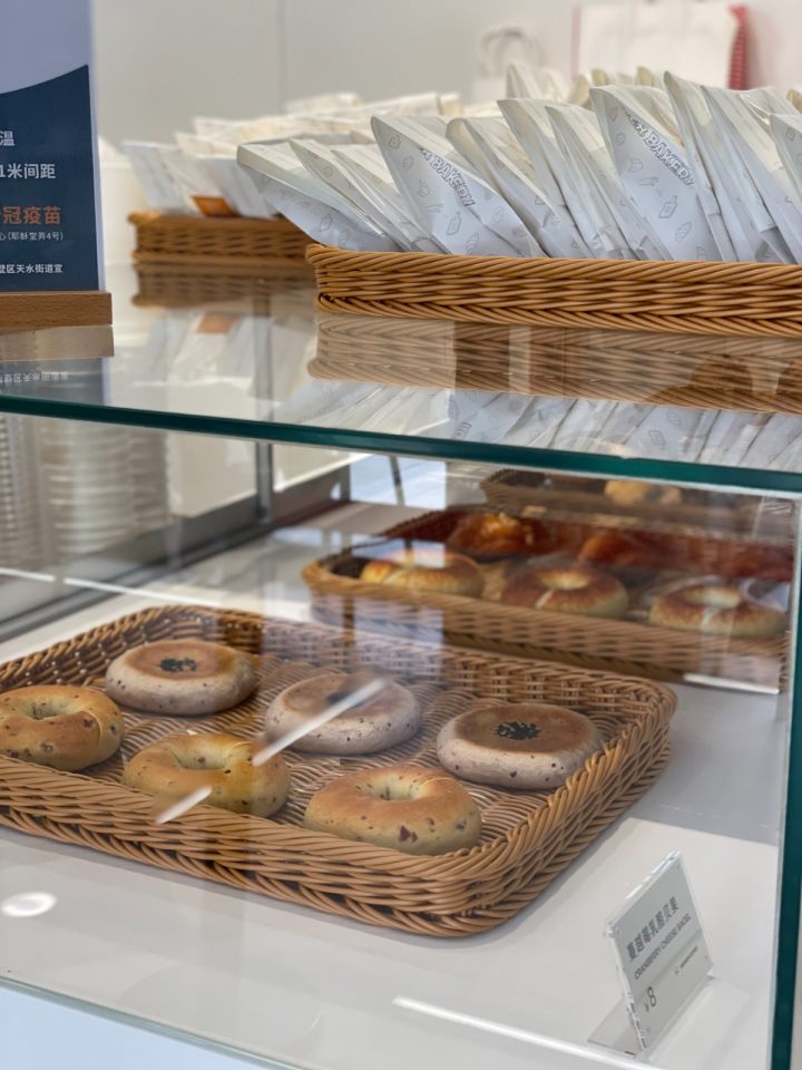 看店名后面还缀有“烘焙”,店里的贝果只要8元,性价比有的。