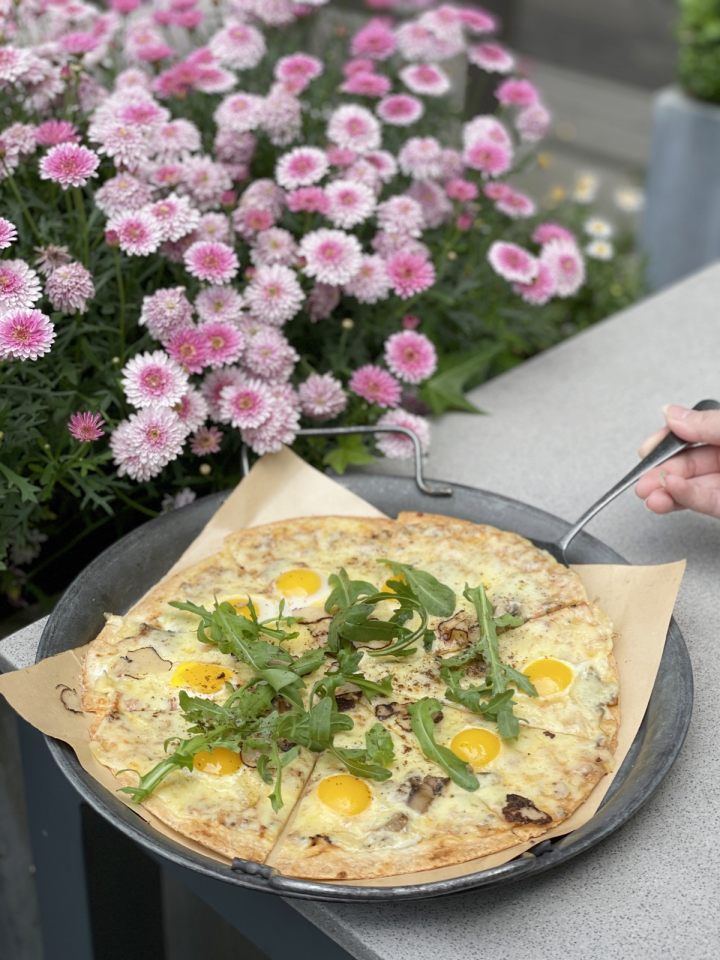 不是我点的菜,所以我完全不知道具体吃了啥,只知道都不踩雷,是轻食里比较合我胃口的。比如这个黑松露鹌鹑蛋披萨,朋友说它的“配料清奇”,有我喜欢的芝麻菜、黑松露和鹌鹑蛋,第一次吃有荷包蛋的披萨呢。