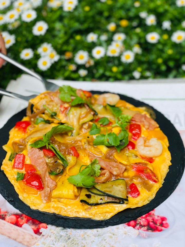 第一眼看着以为也是披萨,其实人家是“鸡蛋饼”,融合了多种蔬菜,佐以鸡蛋香,依然是轻食路线。