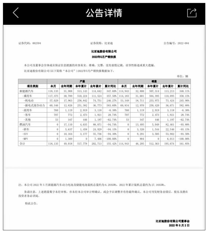 比亚迪股价快速回升和新能源汽车持续的高景气度有着密切联系。6月2日晚间,比亚迪披露5月产销快报显示,新能源汽车产量达11.81万辆,环比增长近10%,同比增长270.24%;新能源汽车销量首次突破11万辆达到11.49万辆,环比增长8.4%,同比增长250.44%。值得注意的是,比亚迪新能源汽车已经连续3个月保持单月“10万+”的销量。