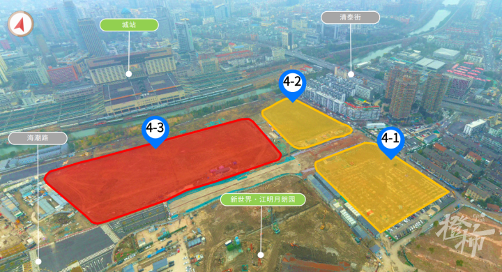在城站火车站东侧的望江新城,也就是城站东广场一带,有3宗地块列入《读地手册》,土地面积分别为22.95亩,22.80亩和53.10亩,总面积超100亩,体量非常大。
