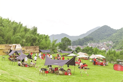 6月11日下午2:00,来自杭州的70多名年轻人齐聚临安忱山露营基地,他们有自驾的,有乘大巴的,还有乘地铁的,只为了一场“逃离都市”的飞盘露营盛宴。