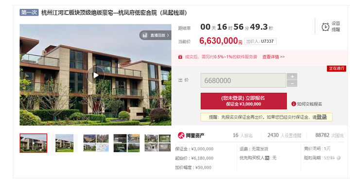今天上午10点,阿里资产开拍了一套杭州江河汇板块稀缺高总价房源——“杭凤府低密合院(推广名:凤起钱潮)”,引发极大关注。