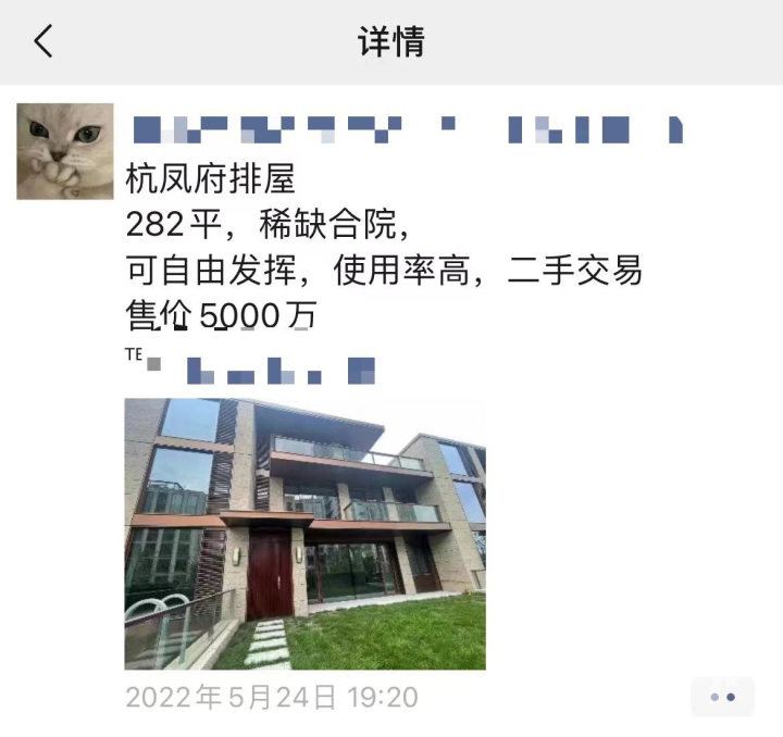 有趣的是,早在5月底,这套房子已经出现在部分豪宅中介的朋友圈,叫价5000万元。但后来又不卖了,选择了拍卖形式出售房源。