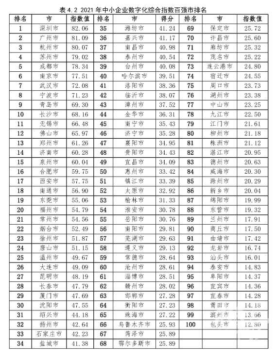 ▲2021年中小企业数字化综合指数百强市