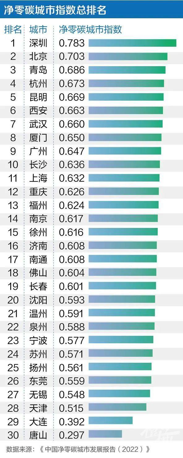 净零碳发展水平,杭州第四