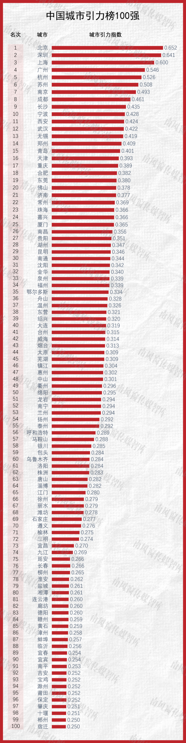 5月15日,南风窗传媒智库和盐财经共同发布《2022中国城市引力指数报告》,围绕城市资本吸引力和城市人才吸引力两大维度,测算了全国GDP前200名的城市,评选出了中国城市引力指数前100强,杭州以0.526的指数位居全国第五。