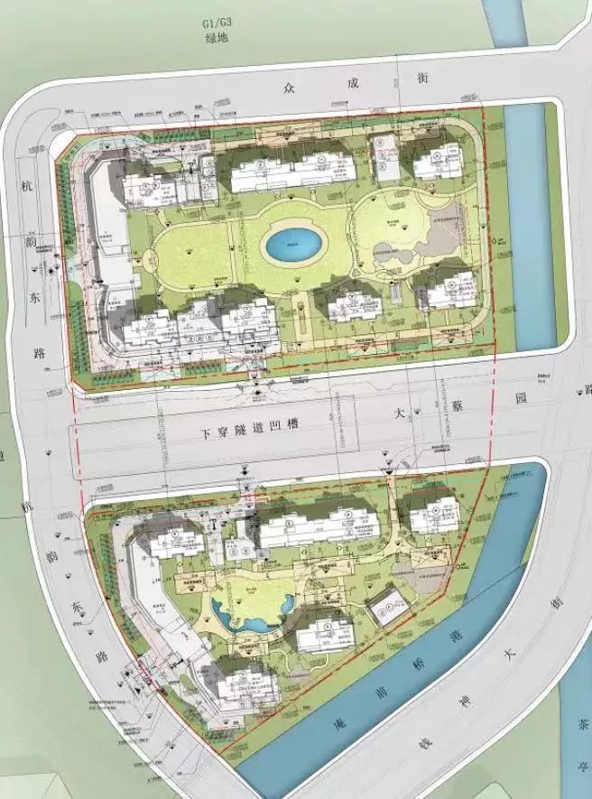 该地块位于西站的东南侧,直线距离约500米左右,西侧挨着杭韵东路,东侧临河,和杭州师范大学附属仓前实验中学、仓前幼儿园、仓前中心小学都十分接近。