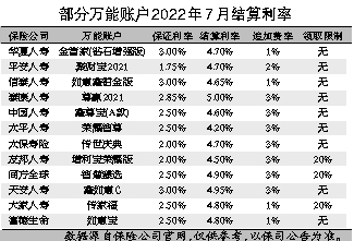 为什么这么说呢?因为万能险有两个利率:保证利率和结算利率,前者写入合同固定不变,目前各公司在1.75%-3%之间;后者每月公布,不固定。据统计,截至2022年6月末,全部1797只万能险结算利率平均值为3.96%,其中有22只高达5%。